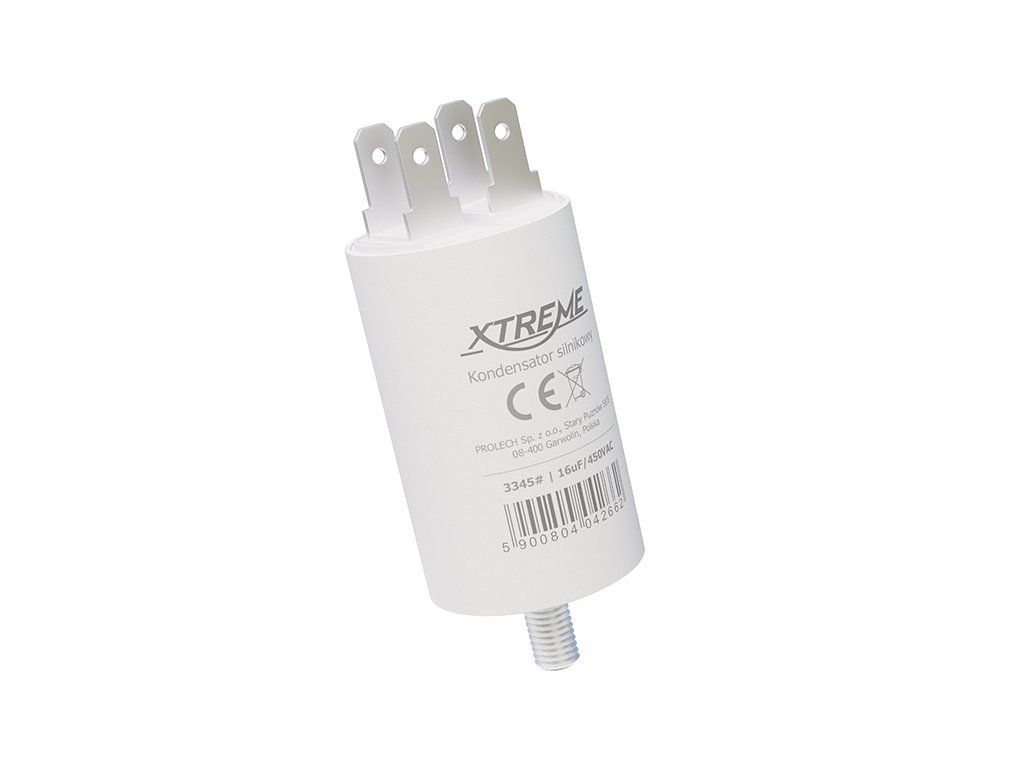 Rozbehový kondenzátor 16uF/450V 3345- je určený pre striedavé indukčné motory pracujúce v sieti 50/60 Hz. Pomáha pri spoľahlivom rozbehu motora a je vhodný pre široké spektrum zariadení v domácnosti aj v dielni. Využitie nájde vo ventilátoroch, dúchadlách, pohonoch brán a roliet, kompresoroch, kosačkách či tlakových umývačkách.