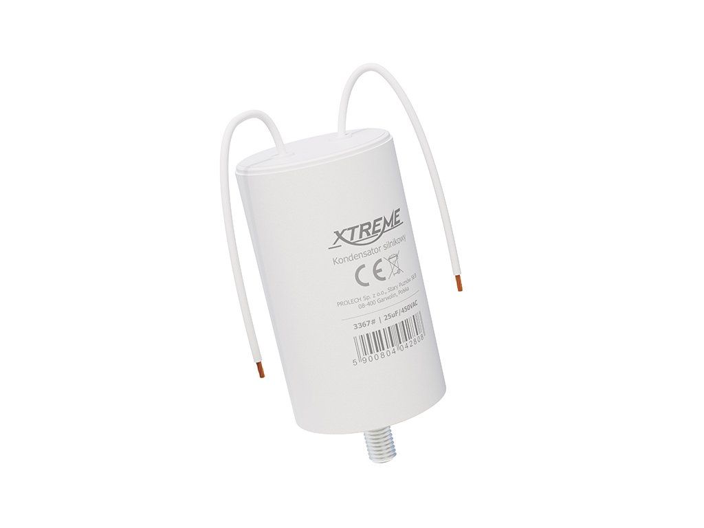 Rozbehový kondenzátor 25uF 3367- je určený pre striedavé indukčné motory s frekvenciou 50/60 Hz. Používa sa ako štartovací a pomocný kondenzátor pri rozbehu motorov v domácich aj priemyselných zariadeniach. Vďaka stabilným parametrom a odolnému vyhotoveniu je vhodný pre dlhodobé a spoľahlivé používanie.