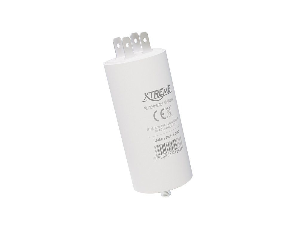 Rozbehový kondenzátor 3348- s kapacitou 30 µF a napätím 450 V AC je určený pre jednofázové striedavé indukčné motory. Pomáha pri spoľahlivom rozbehu motora a je vhodný do zariadení, kde sa vyžaduje krátkodobé štartovacie zaťaženie.