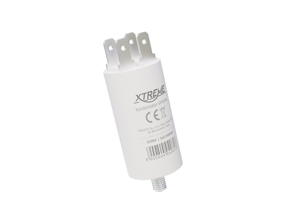Rozbehový kondenzátor 3uF/450V 3338- je určený pre striedavé indukčné motory pracujúce na frekvencii 50/60 Hz. Využijete ho najmä vo ventilátoroch, dúchadlách, pohonoch brán a roliet, kompresoroch, kosačkách na trávu či tlakových umývačkách. Pomáha motoru pri rozbehu a prispieva k jeho spoľahlivému štartu.