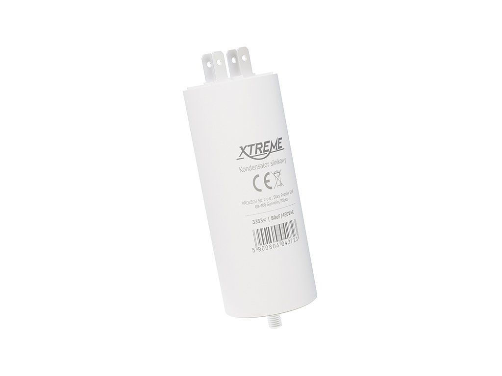 Rozbehový kondenzátor 80uF/450V 3353- je určený pre jednofázové striedavé indukčné motory používané v domácich aj poloprofesionálnych zariadeniach. Pomáha motoru pri bezpečnom a spoľahlivom rozbehu, zlepšuje jeho štartovacie vlastnosti a prispieva k stabilnej prevádzke.