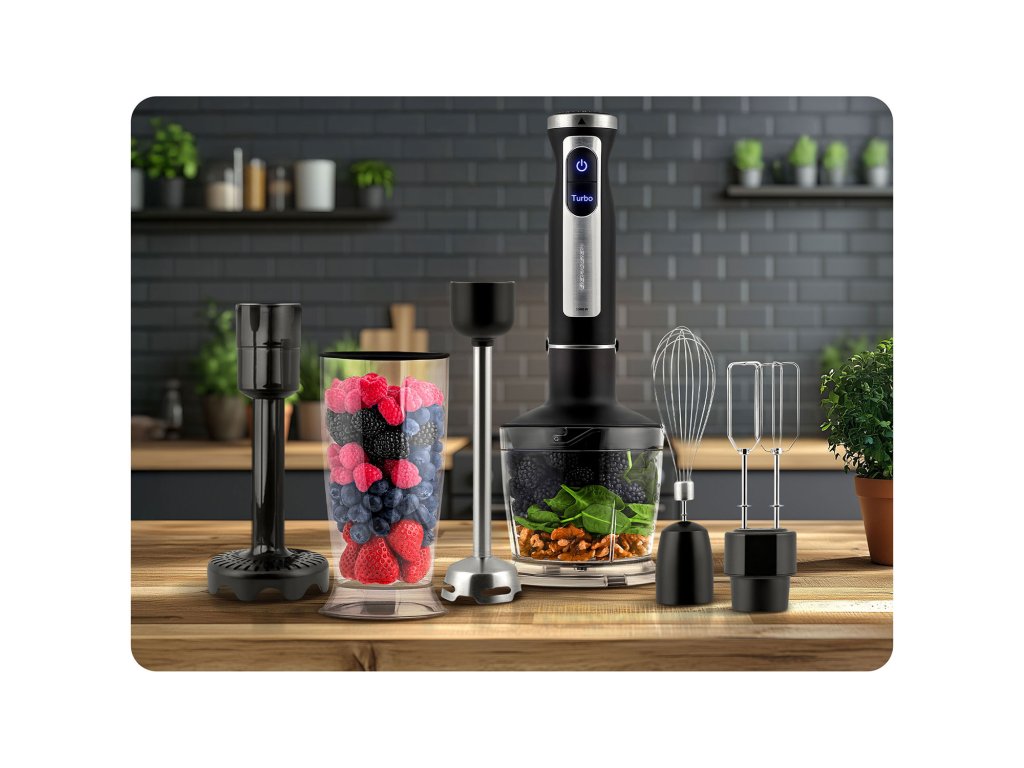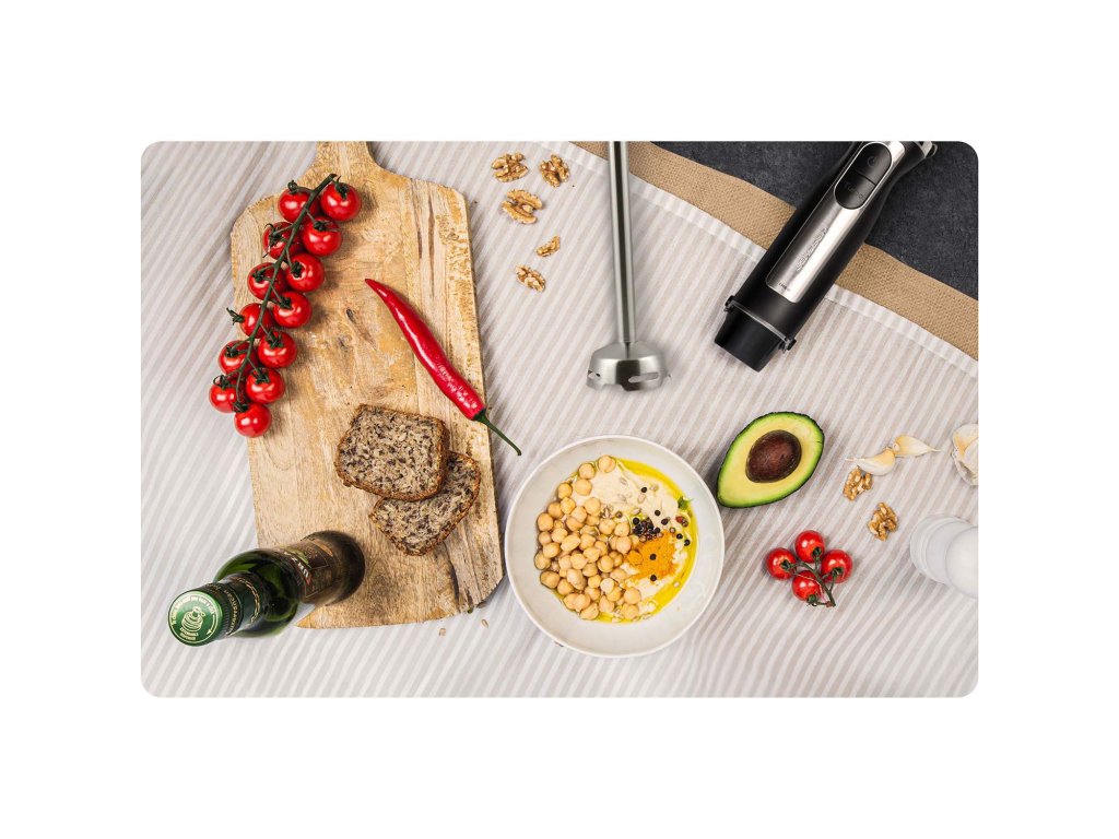 - Slúži na mixovanie a sekanie ingrediencií do hladkej hmoty. Ideálny na prípravu krémových polievok, omáčok, smoothie alebo zeleninového pyré.