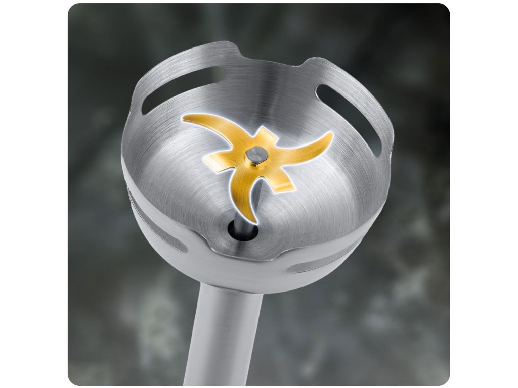 Titánová čepeľ GOLD sa vyznačuje výnimočnou tvrdosťou a odolnosťou voči korózii, čo sa prejavuje na výrazne dlhšej životnosti mixéra.