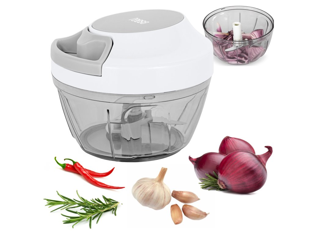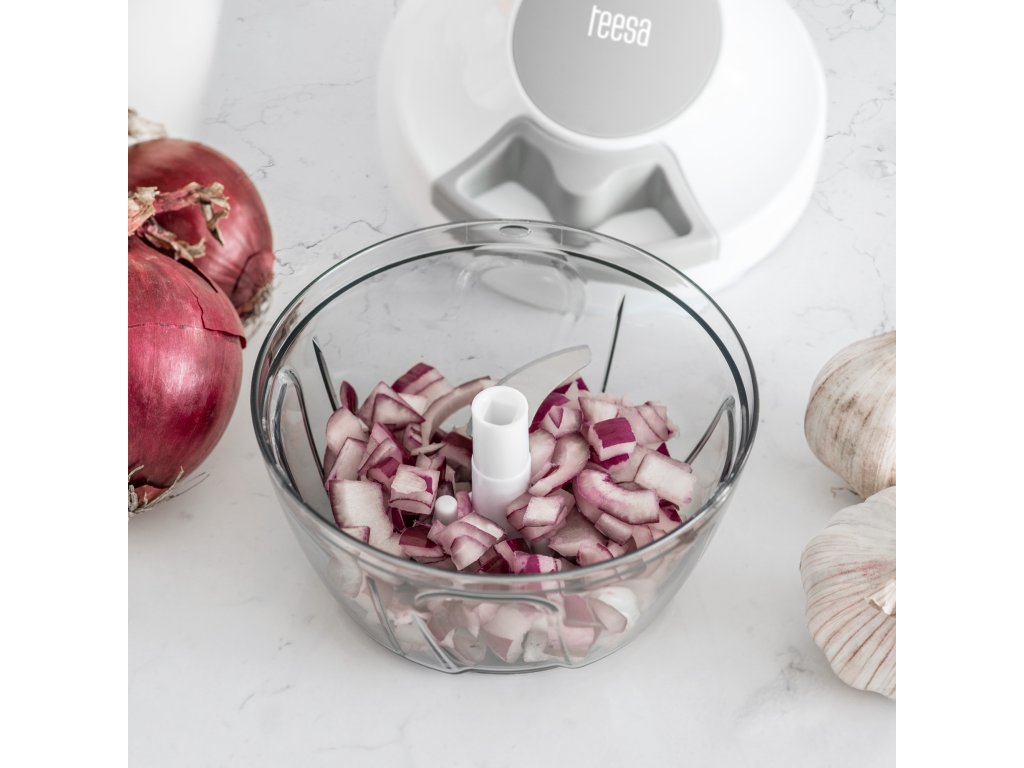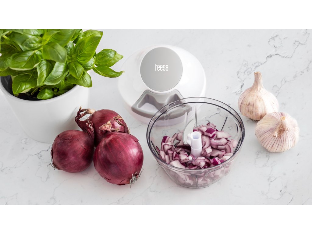Potrebujete malý spotrebič, ktorý vám pomôže rýchlo pripraviť obľúbený šalát alebo vaječnú pastu? Alebo sa chystáte kempovať a potrebujete krájač cibule? Vyberte si ručný mini sekáčik na zeleninu Teesa 400 ml, ktorý pomocou troch rôzne umiestnených nožov ľahko naseká cibuľu, mrkvu, orechy alebo bylinky.