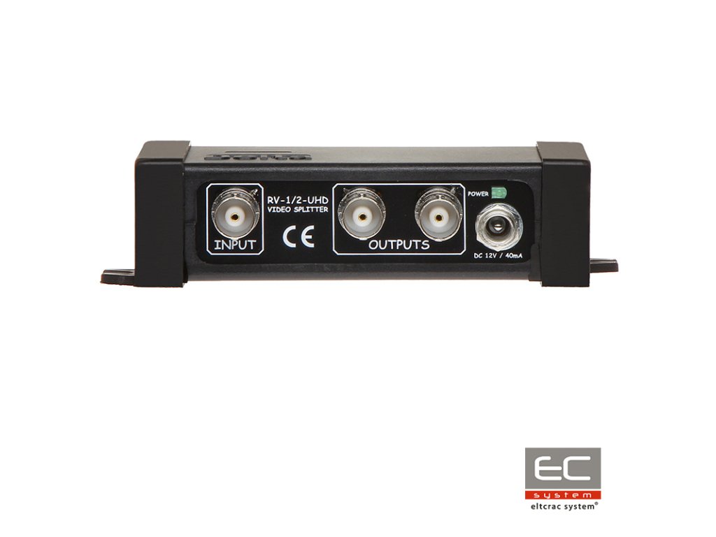 RV-1/2-UHD video rozbočovač, ktorý umožňuje delenie video signálov bez straty kvality signálu, je kompatibilný so zdrojmi 4K UHD. Produkt bol prispôsobený na nepretržitú prevádzku v uzavretých priestoroch. Zariadenie bolo tiež prispôsobené pre farebne aj čiernobiele kamery a PAL. Vhodné vzdialenosti medzi zásuvkami nám umožňujú voľné utiahnutie BNC konektora. Konektory sú chránené špeciálnou TVS diódou.
