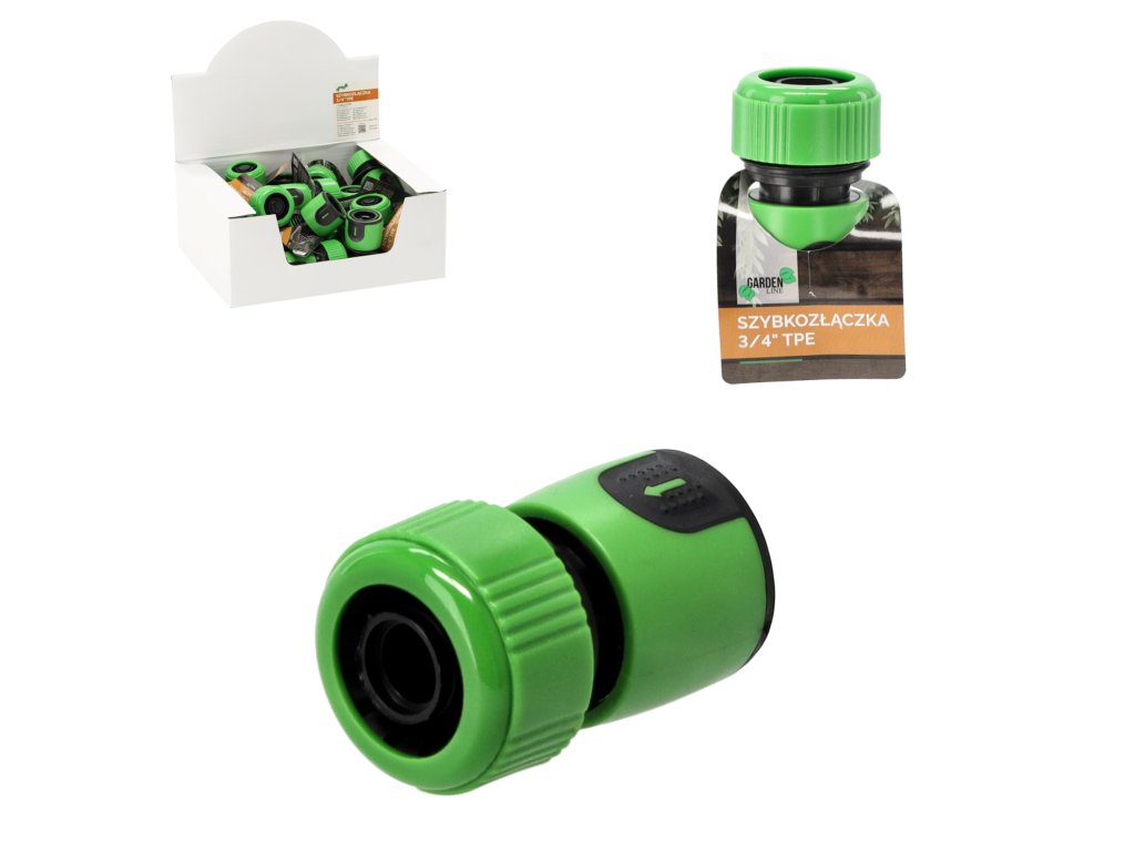 Rychlospájka 3/4" vyrobená z kvalitného plastu. Umožňuje rýchle pripojenie záhradnej hadice k vodovodnému kohútiku, postrekovaču, pištoli alebo inému zariadeniu. Má protišmykový povrch TPE, ktorý zabezpečuje pohodlie a komfort montáže.