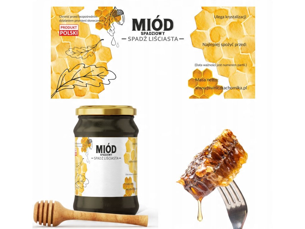 Súprava etikiet určených na med medovicový - medovicový listnatý. Súprava pozostáva zo 100 kusov etikiet. Vďaka etikete bude môcť spotrebiteľ identifikovať druh medu a dátum spotreby.Rozmery:
