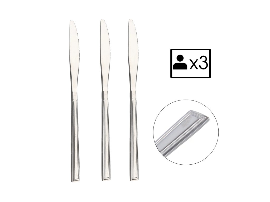 Súprava 3 kusov nožov vyrobených z vysokokvalitnej nehrdzavejúcej ocele. Séria „Milano“ má výnimočné hranaté zakončenie, ktoré môžete bez problémov naaranžovať na akomkoľvek modernom stole.Dodatočné parametre