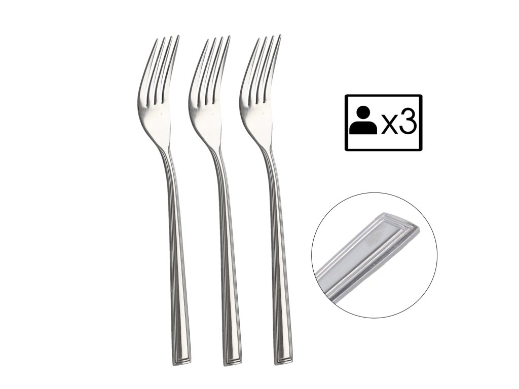 Súprava 3 kusov vidličiek vyrobených z vysoko kvalitnej nehrdzavejúcej ocele. Séria „Milano” má výnimočné štvorcové zakončenie, ktoré bez problémov môžete naaranžovať na každom modernom stole.Dodatočné parametre