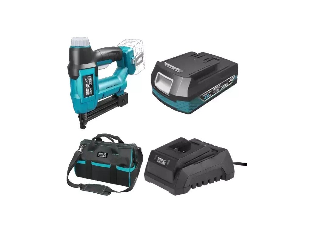 Akumulátorová sponkovačka 2 v 1 DED7055 je nástroj určený na spájanie rôznych komponentov pomocou sponiek alebo klincov. Môže sa použiť na kutilské práce, tapetovanie a pokrývačské práce. Pohodlný volič nastavuje hnaciu silu sponiek a klincov. Zásobník obsahuje 100 sponiek. Osvetlenie LED zvyšuje komfort práce v zle osvetlených priestoroch. Náradie je vybavené ochranou proti náhodnému spusteniu.