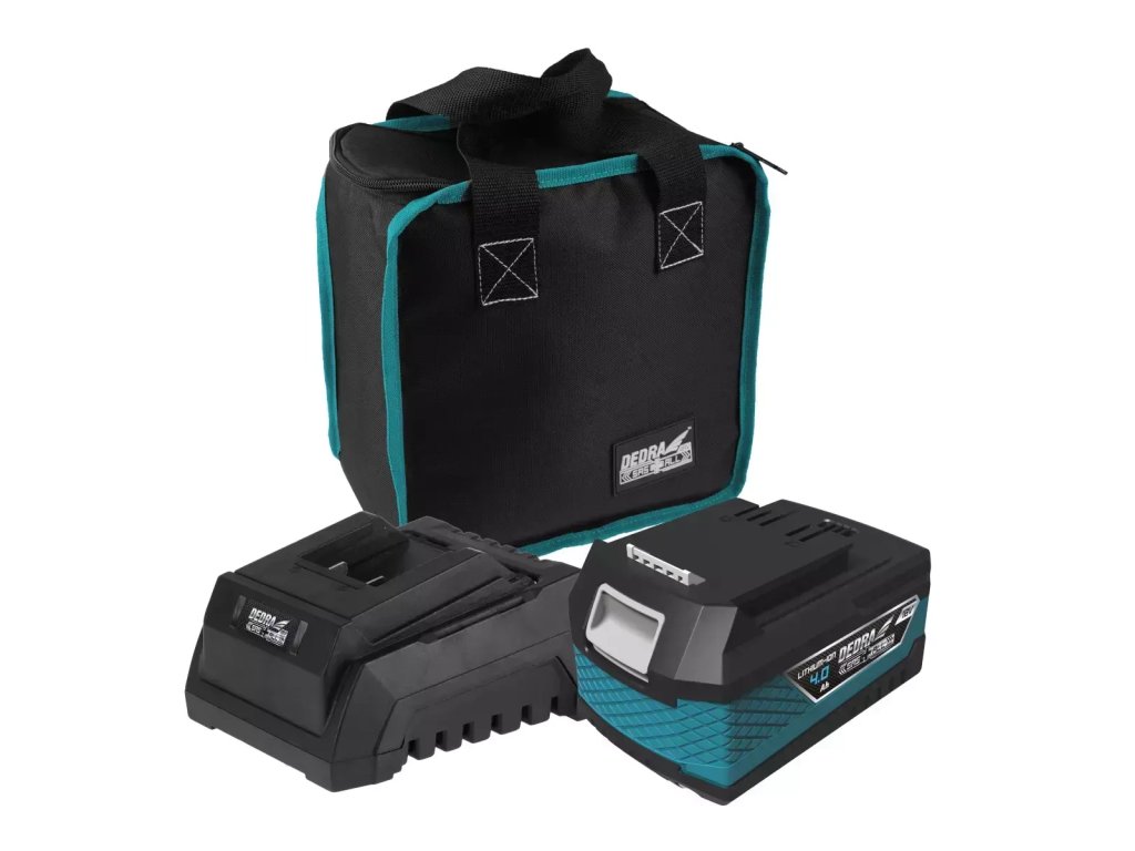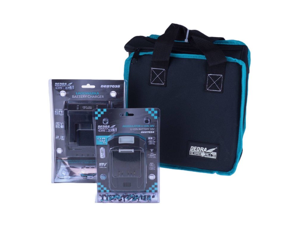 Nabíjačka DED7038 je špecializovaný produkt na nabíjanie batérií z radu SAS+ALL( DED7032, DED7034, DED7035). Batériu s kapacitou 2,0 Ah možno nabiť za 1 hodinu, batériu s kapacitou 4,0 Ah za 2 hodiny a batériu s kapacitou 5 Ah za2 ,5hodiny. Nabíjačka je vybavená dvoma LED diódami: jedna informuje o pripojeník sieti, druhá o ukončení nabíjania batérie.