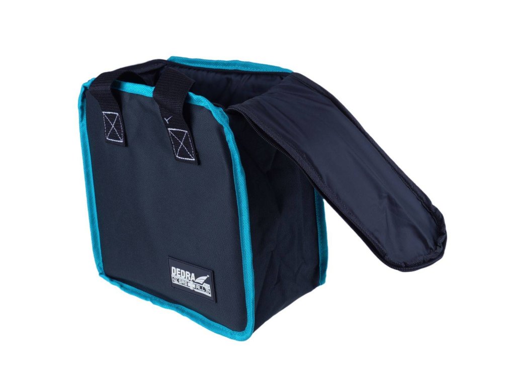 Kufrík na náradie DED7001 B cube je ideálny spôsob, ako udržať poriadok v náradí SAS+ALL pri jeho skladovaní a preprave. Kufrík má objem 10 litrov a je vyrobený z odolného dvojvrstvového polyesteru 600D, ktorý zaručuje odolnosť výrobku voči mechanickému poškodeniu, ale aj ochranu náradia počas prepravy. Puzdro sa zapína na zips a je vybavené dvoma popruhmi/sponkami.