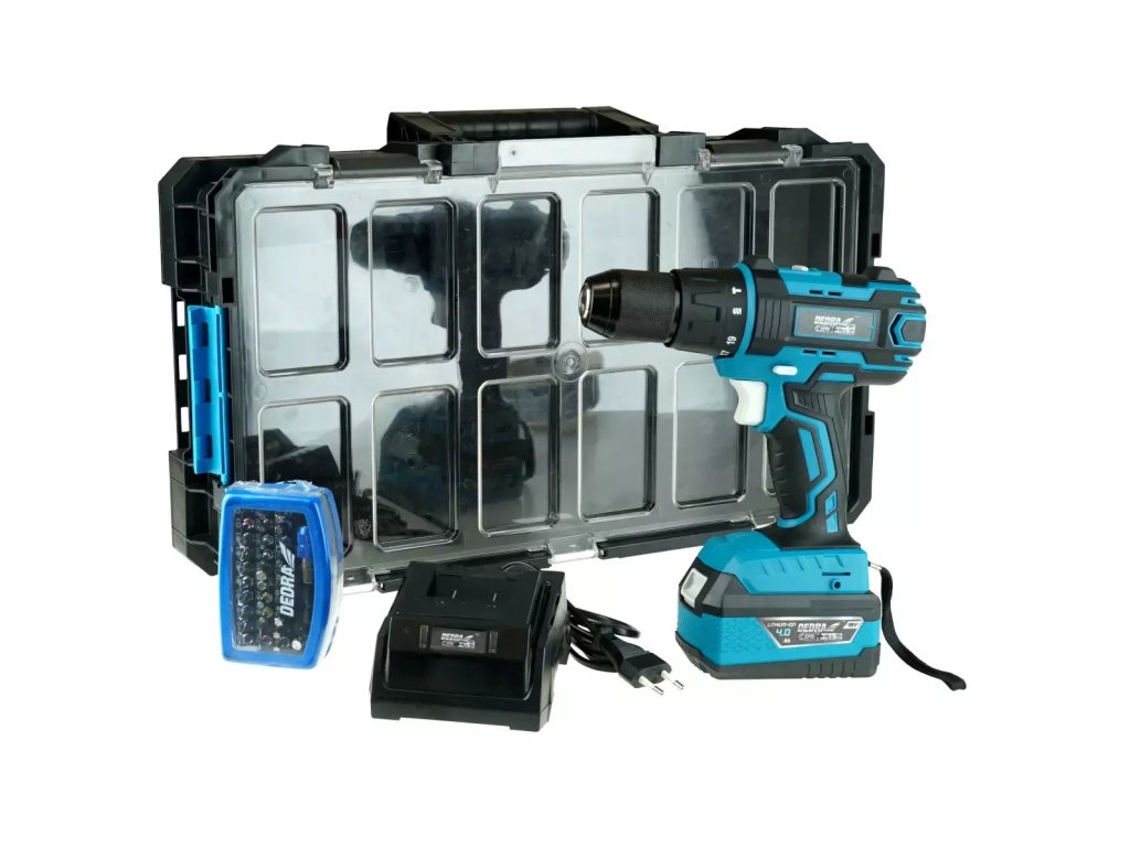 Akumulátorový vŕtací skrutkovač DEDRA SAS+ALL DED7042 je užitočným nástrojom do každej domácnosti. Môže sa používať v dielni pre domácich majstrov aj pre profesionálov v stavebníctve. Tento skrutkovač s krútiacim momentom 50 Nm je ideálny na skrutkovanie a vŕtanie do materiálov, ako sú drevo, kov, plast a plasty. Dodatočnou funkciou tohto modelu je mechanické kladivo, ktoré rozširuje možnosti stroja o vŕtanie do betónu alebo tehál. Kryt je vyrobený z nylonu vystuženého sklenenými vláknami, vďaka čomu je odolnejší voči mechanickému poškodeniu a UV žiareniu. Ergonómiu a pohodlie zvyšuje nízka hmotnosť prístroja a pogumovaná rukoväť. Prídavné LED svetlo umožňuje presnú prácu v ťažkoprístupných oblastiach pri slabom osvetlení. Vďaka 13 mm jednoplášťovému skľučovadlu sa do neho ľahko nasadia všetky druhy vrtákov ab i t o v .Vlastnosti: