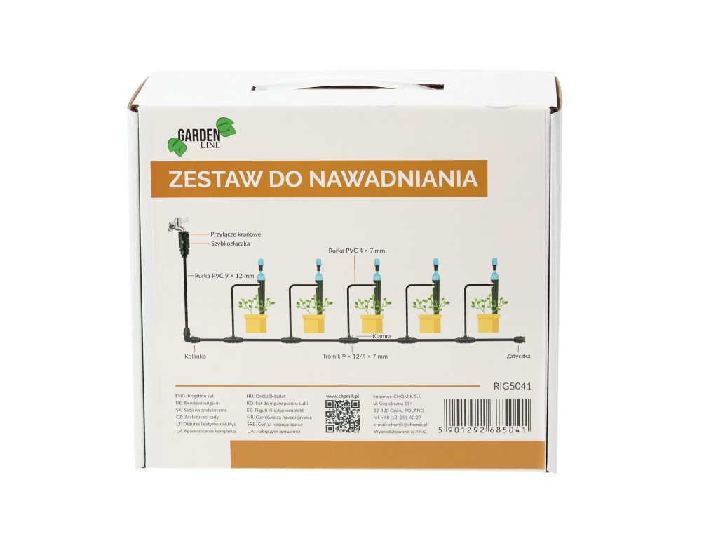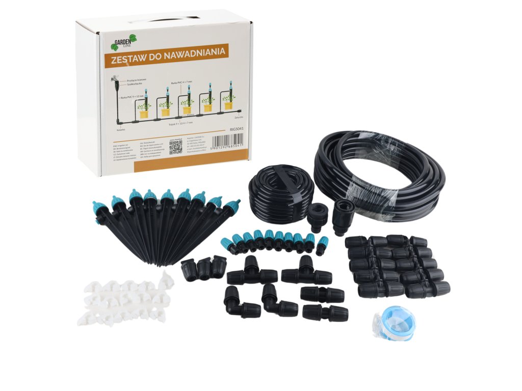 Súprava na zavlažovanie je praktické riešenie, ktoré uľahčuje prácu v záhrade, zabezpečuje pravidelné dávkovanie vody. Je to ideálny spôsob zabezpečenia vhodnej zálievky rastlín, čo je kľúčové pre ich zdravý rast. Súprava vyrobená z odolných materiálov ako PVC, PP, ABS a POM zaručuje trvanlivosť a spoľahlivosť. Vďaka rôznym prvkom v súprave, zavlažovací systém bude fungovať efektívne dlhý čas.