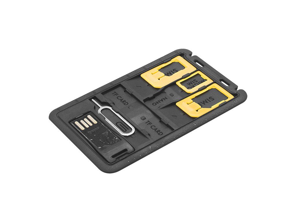 Sada obsahuje viacero slotov pre rôzne typy kariet, adaptéry aj praktické doplnky pre jednoduchšiu manipuláciu so SIM kartami a pamäťovými kartami.