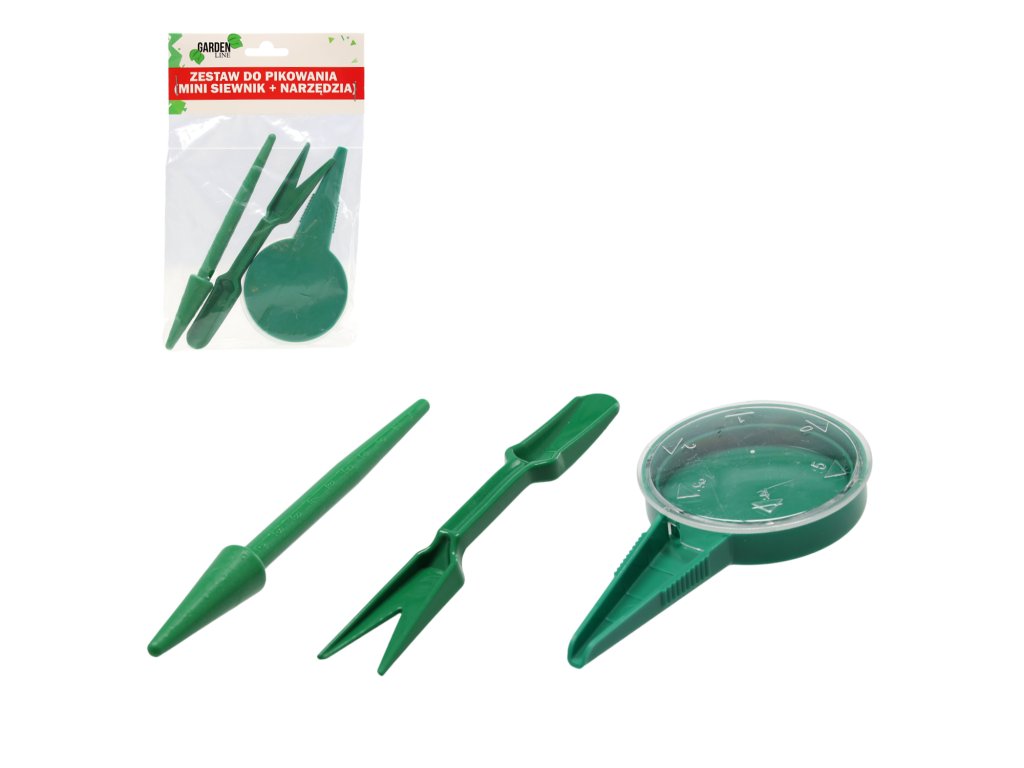 Súprava nástrojov na pikírovanie je sada malých pomôcok, ktoré sa zídu v každej záhrade. Uľahčia prácu každému, kto sám siate semená a pestuje sadenice zeleniny alebo kvetov. Neoceniteľné budú počas siatia semien, pikírovania a sadenia rastlín. Vďaka nim práce vyžadujúce veľkú presnosť a jemnosť vykonáme rýchlo a efektívne, bez toho, aby sme si zašpinili ruky. Súprava mini nástrojov obsahuje všetko potrebné na sadenie semien a presádzanie jemných sadeníc. Uľahčí vytváranie otvorov v pôde, prenášanie, pikírovanie a zasypávanie sadeníc zeminou. Vyrobená je z vysoko kvalitného plastového materiálu, vďaka čomu je trvanlivá a bude nám dobre slúžiť dlhé roky.Dodatočné parametre