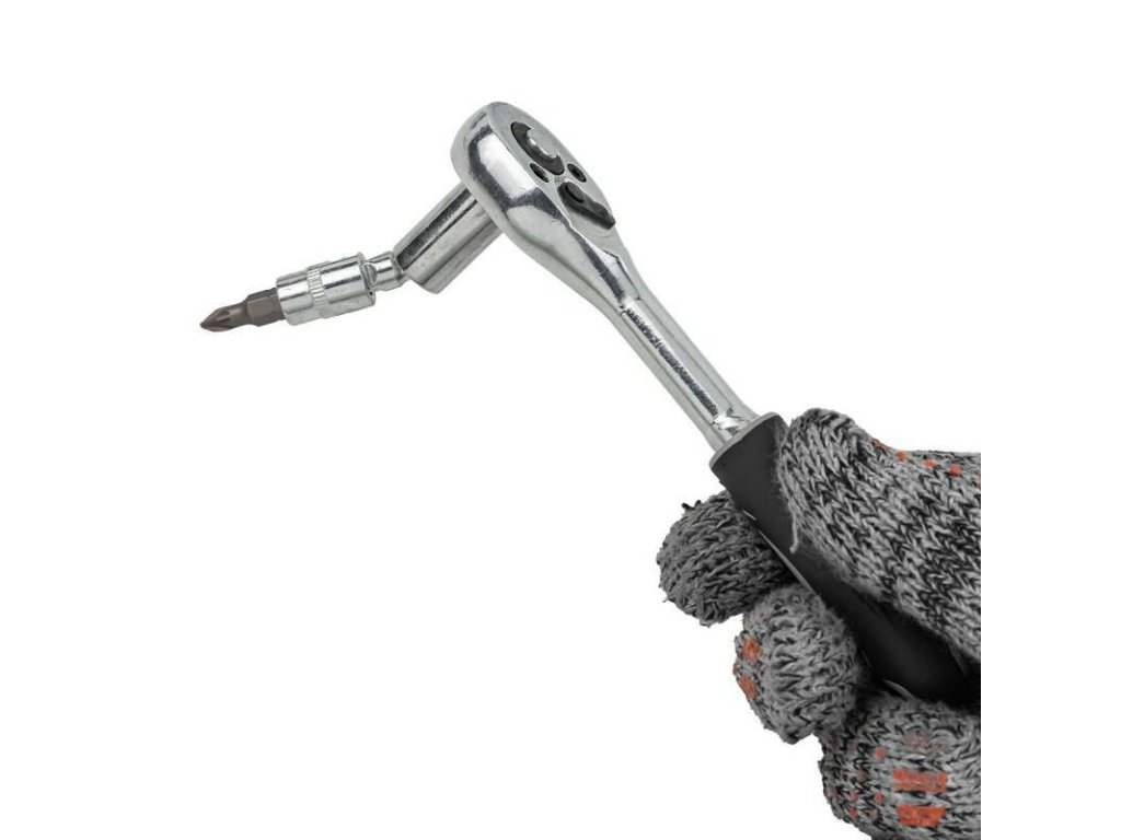 Súčasťou súpravy je račňa, vybavená trvanlivým západkovým mechanizmom. Súprava obsahuje bohatý balík nástrčných kľúčov (vo veľkostiach od 4 do 14 mm) a skrutkovacích hrotov (ploché, krížové, šesťhranné, Torx).
