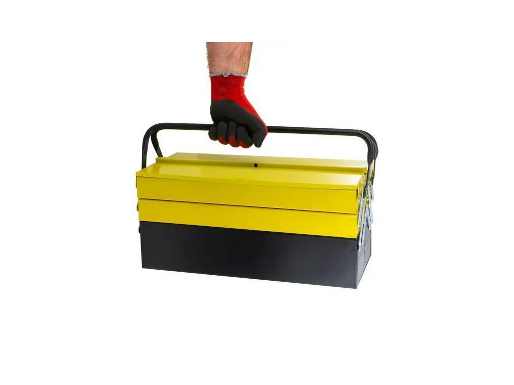 Skrinku je možné uzamknúť zámkom, čo zaručuje bezpečný a ľahký prenos nástrojov.
