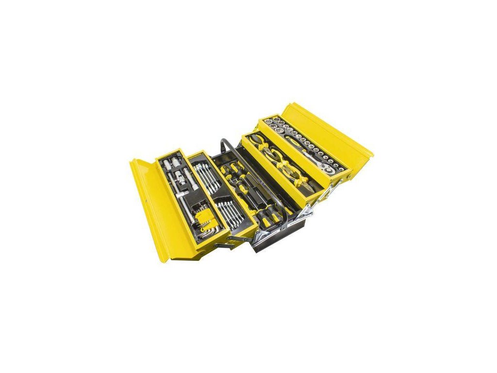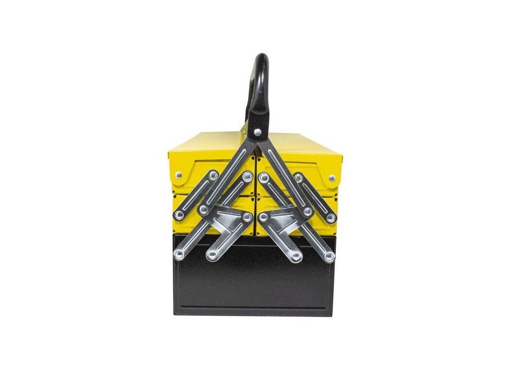 Skrinku možno uzamknúť visiacim zámkom, čo zabezpečuje bezpečnú a jednoduchú prepravu nástrojov.