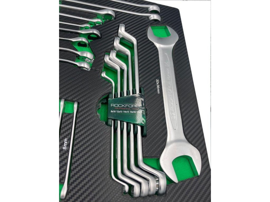 Sada sa vyznačuje vysokou kvalitou spracovania, čo znamená, že sa osvedčí v najťažších pracovných podmienkach pri veľkom zaťažení. Kľúče prevýšujú normy DIN 3113. Sada Rockforce je ideálnou voľbou pre profesionálne mechanické a automobilové dielne.