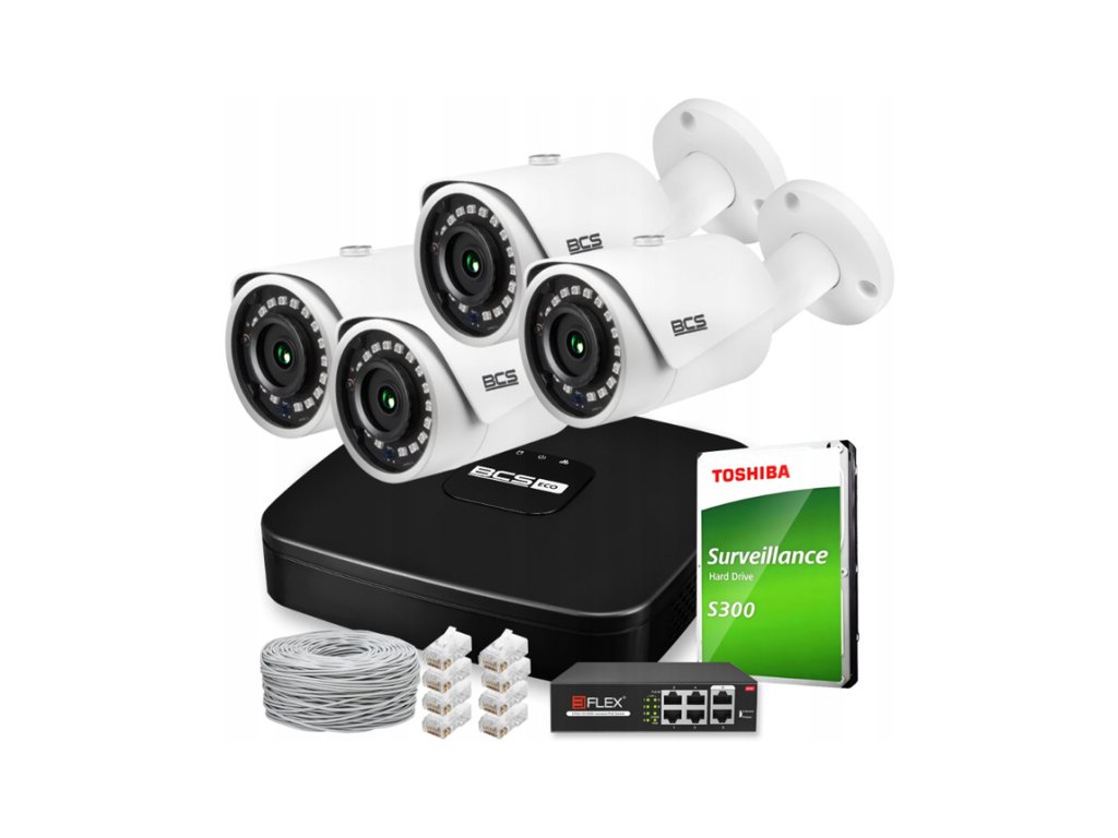 Sada pre monitoring IP 4Mpx, IR30m, 4 IP kamery BCS-L-TIP14FR3, nahrávač 8ch, PoE switch - BCS