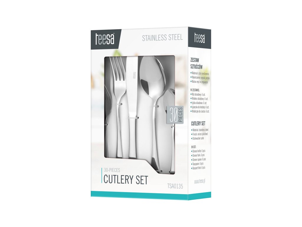 Príbor je jedným zo základných prvkov každej domácnosti. Preto bude 30-dielna súprava príborov Teesa z nehrdzavejúcej ocele nepostrádateľná pri každodennom stolovaní aj na návšteve.