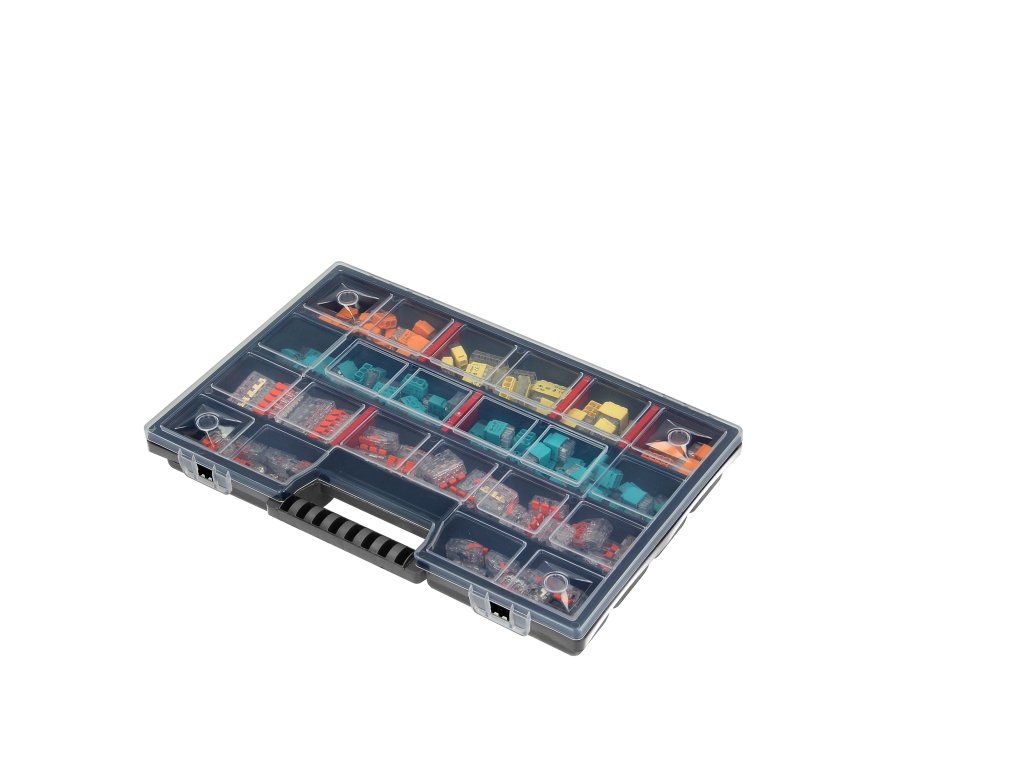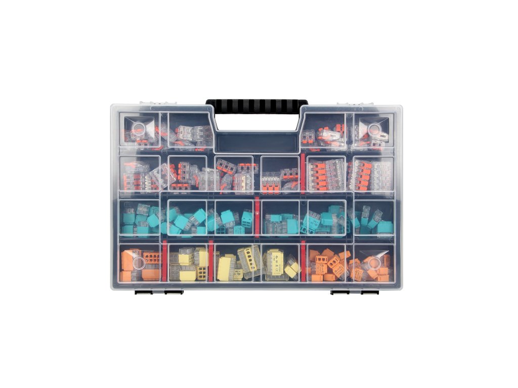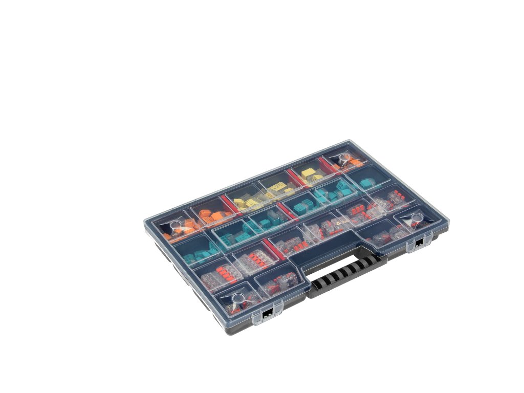 - Kompletná sada: Táto pôsobivá súprava obsahuje široký výber push-in a svorkových konektorov, ktoré pokryjú všetky vaše potreby v oblasti elektroinštalácií.