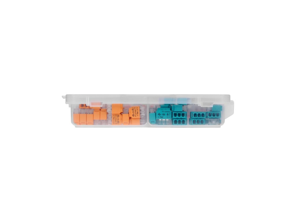 - Jednoduché použitie: Vďaka systému push-in, ktorý umožňuje jednoduché a bezpečné pripojenie vodičov, je práca s touto sadou rýchla a efektívna.