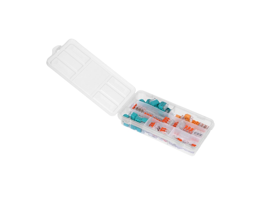Sada push-in konektorov a svoriek 290 ks je nevyhnutným vybavením každého, kto sa zaoberá elektroinštaláciami. Neváhajte a pridajte túto praktickú a efektívnu sadu do svojho náradia. Využite príležitosť zvýšiť presnosť a bezpečnosť vašich spojov a ušetriť čas pri každom projekte! Už žiadne zložité skrutkovanie alebo neprehľadné hľadanie správneho konektora - s touto sadou je všetko na dosah ruky a pripravené okamžite k použitiu.