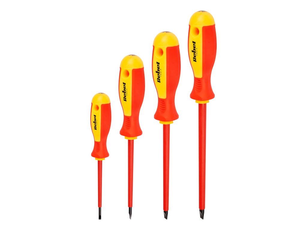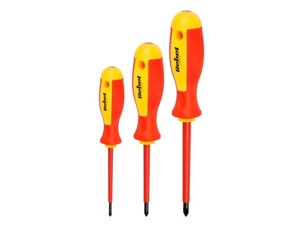 Záleží vám na bezpečnosti pri opravách a renováciách? Nezabudnite si kúpiť sadu izolovaných skrutkovačov Rebel Tools s dvoma typmi skrutkovačov: plochým a krížovým. Ich rukoväte sa vďaka špeciálnemu náteru perfektne hodia na prácu na vysokonapäťových inštaláciách do 1000 V a komfort pri práci výrazne zvyšujú magnetické hroty, vďaka ktorým ľahko odstránite alebo zaskrutkujete skrutky v konštrukcii alebo inštalácii. Sada izolovaných skrutkovačov Rebel Tools vyrobená z chróm-vanádiovej ocele odolnej voči korózii a hrdzi vám bude slúžiť naozaj dlho.
