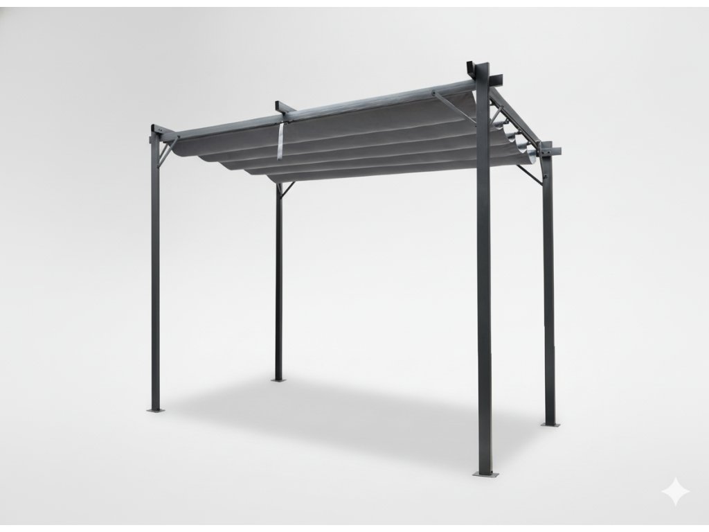 Rám našej pergoly je vyrobený z práškovo lakovaných oceľových profilov, čo zaručuje pevnosť a stabilitu konštrukcie. Poťah je vyrobený z hrubej polyesterovej tkaniny s gramážou 300 g/m2, ktorá poskytuje nielen ochranu pred slnkom, ale aj pred miernym dažďom vďaka vodoodpornej konštrukcii.