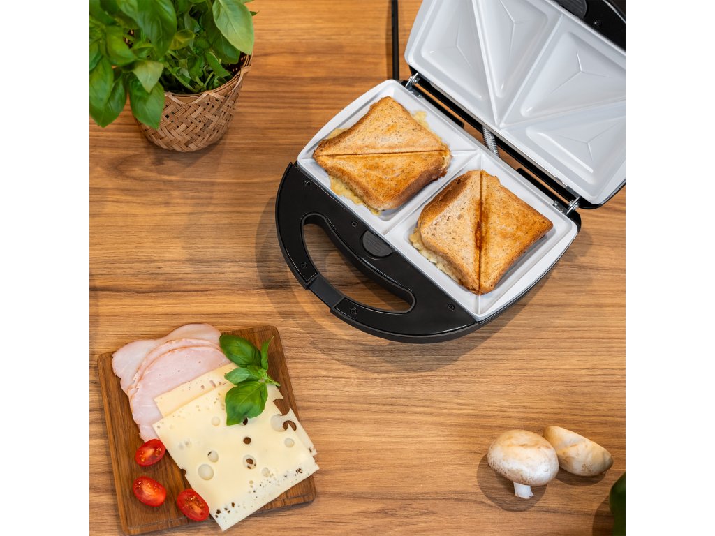 Pohodlnú manipuláciu so spotrebičom zabezpečuje rukoväť, ktorá sa nezahrieva, a indikátory, ktoré ukaz ujú, že spotrebič je pripojený k napájaniu a pripravený na použitie. Okrem toho je hriankovač Teesa 3v1 vybavený protišmykovou základňou a ochranou proti prehriatiu, aby vám poskytol maximálnu bezpečnosť. Veko hriankovača je vyrobené z nehrdzavejúcej ocele, takže je nielen mimoriadne pevné, ale vďaka nemu spotrebič dokonale zapadne do dizajnu vašej kuchyne. Výhodou hriankovača je, že sa dá skladovať vo zvislej polohe, takže bez ohľadu na veľkosť miestnosti sa preň určite nájde miesto.
