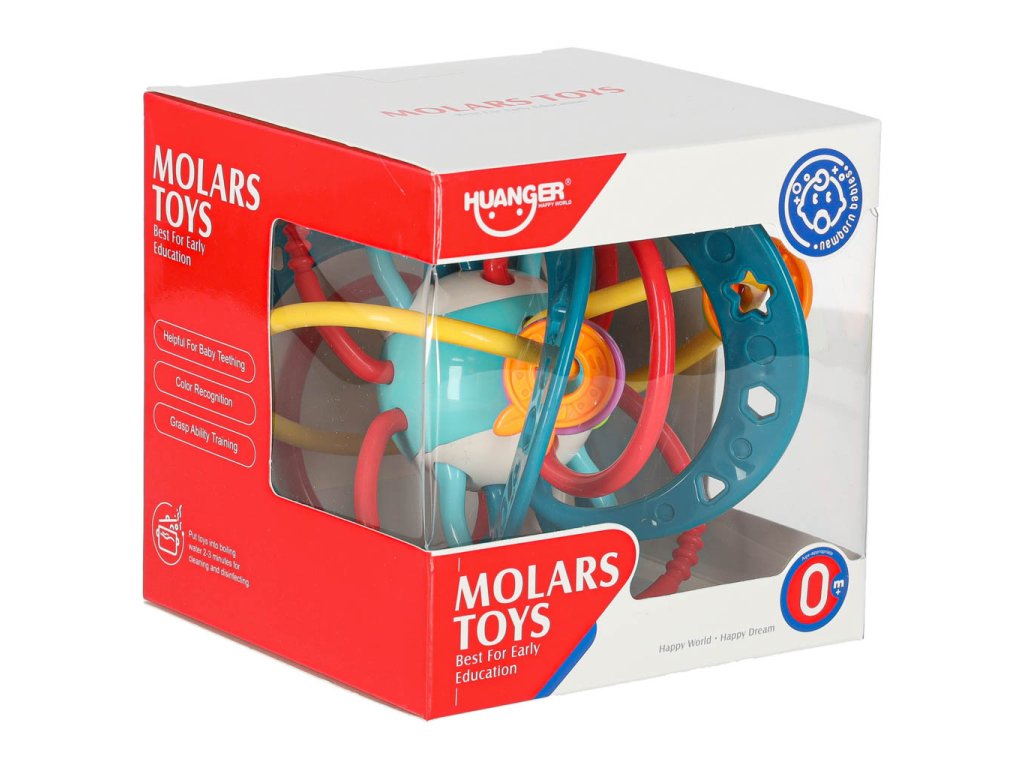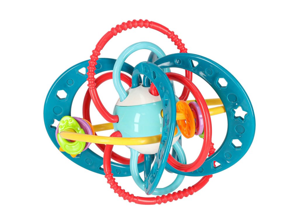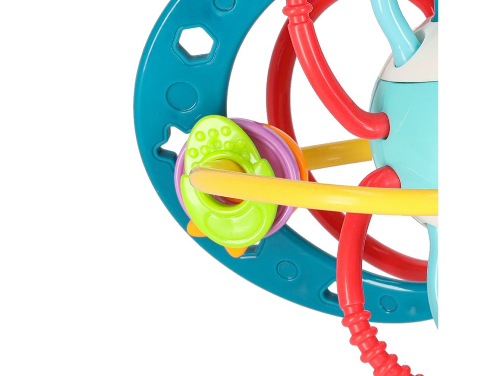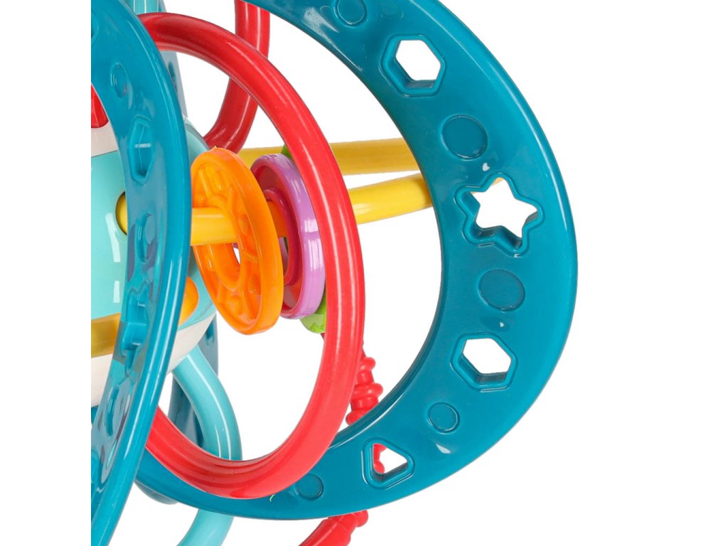 Diferencovaný povrch hryzátka rozvíja hmat. A chrastiace prvky stimulujú sluch. Živé farby upútajú pozornosť batoľaťa a rozvíjajú jeho zrak.
