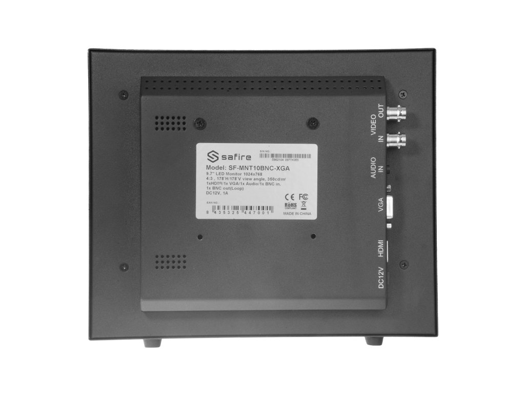 Model SF-MNT10BNC-XGA má video výstupy - 1x HDMI a 1x VGA a BNC. Navyše, monitor má 1 audio vstup audio. Vďaka kompatibilite so štandardom VESA môže byť monitor zavesený takmer na akomkoľvek stenovom alebo stropnom držiaku.