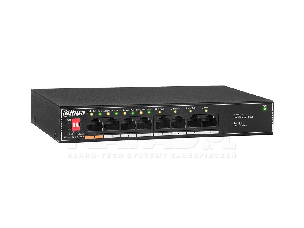 - Počet portov: 4x PoE + 4x RJ45 Auto detekcia MDI/MDI-X