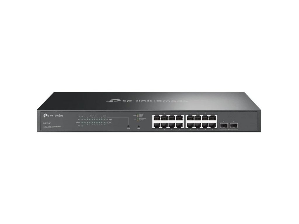 TP-Link SG2218P je gigabitový prepínač Smart JetStream, vybavený 16 portami PoE+ a 2 slotmi SFP, navrhnutý s cieľom zabezpečiť vysokú výkonnosť a flexibilitu pri správe siete. Integrácia s platformou Omada SDN umožňuje centralizované spravovanie siete z úrovne cloudu, čo ho robí ideálnym riešením pre malé a stredné podniky.