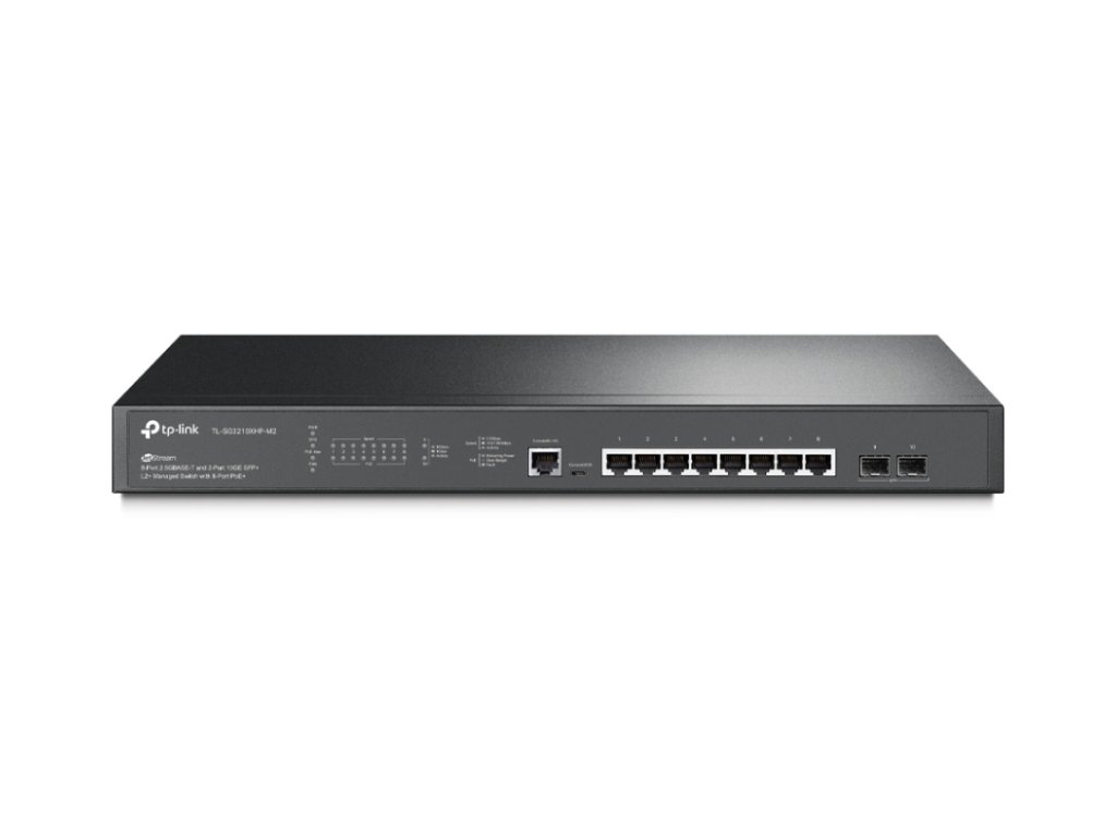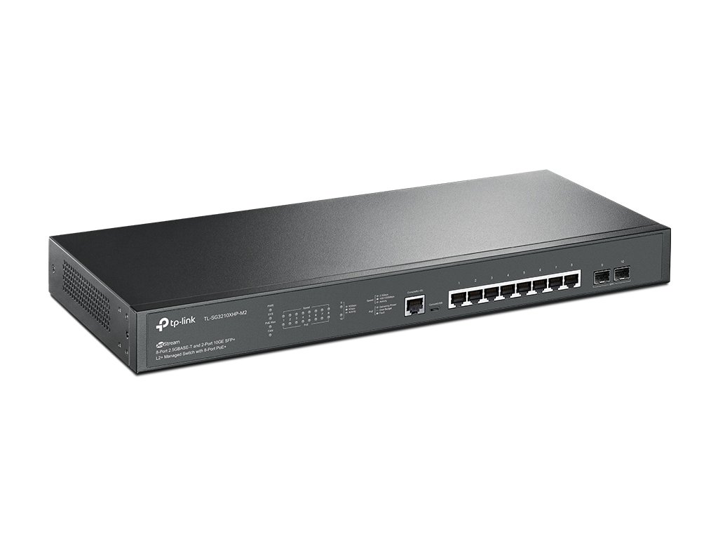 TP-Link SG3210XHP-M2 je pokročilý spravovaný prepínač L2+ zo série JetStream, vybavený 8 portami 2,5 GBASE-T PoE+ a 2 slotmi 10G SFP+. Zariadenie bolo navrhnuté s cieľom maximálne využiť potenciál siete Wi-Fi 6 a zabezpečiť vysoko výkonné pripojenia v podnikových prostrediach