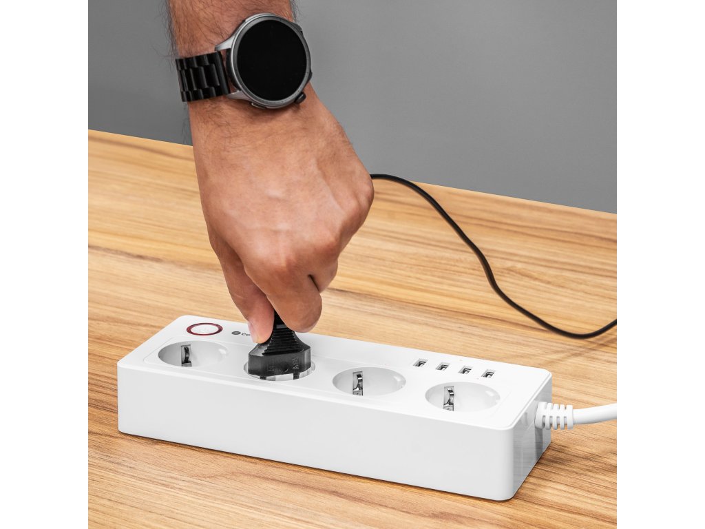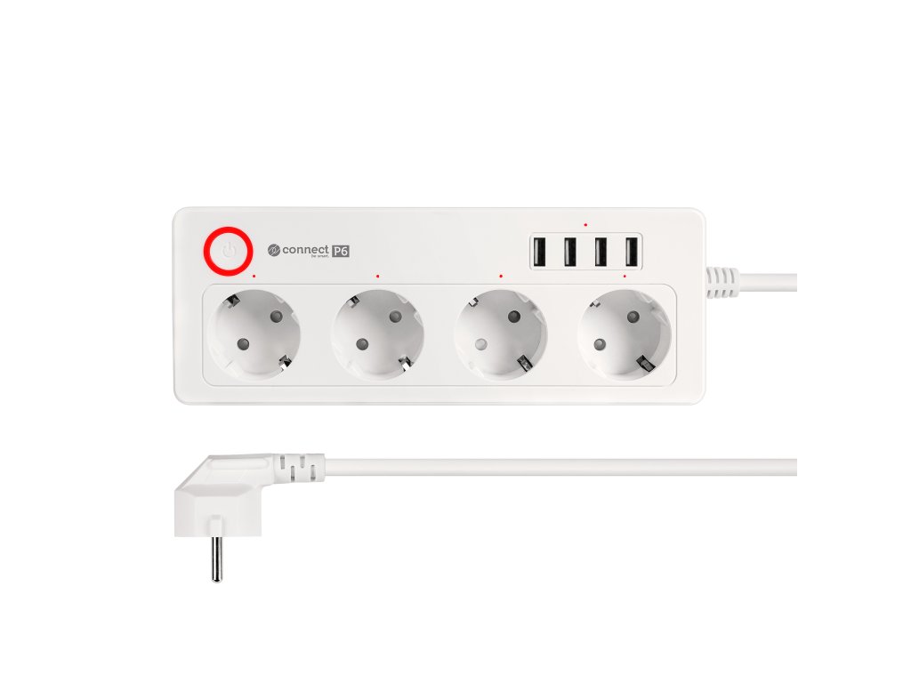 Inteligentný napájací zdroj wifi Connect P6 je vybavený štyrmi nemeckými zásuvkami, ktoré umožňujú pripojenie rôznych zariadení – od počítačov, cez lampičky, až po RTV zariadenia. Každú zásuvku môžete zapínať a vypínať samostatne, čím šetríte energiu a zvyšujete bezpečnosť.
