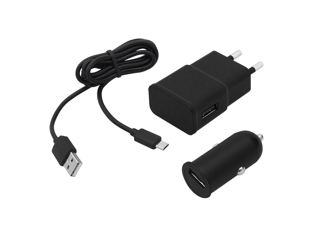 USB 2,1A sieťová +USB 2A nabíjačka do auta s káblom USB (A) na micro USB (B))
