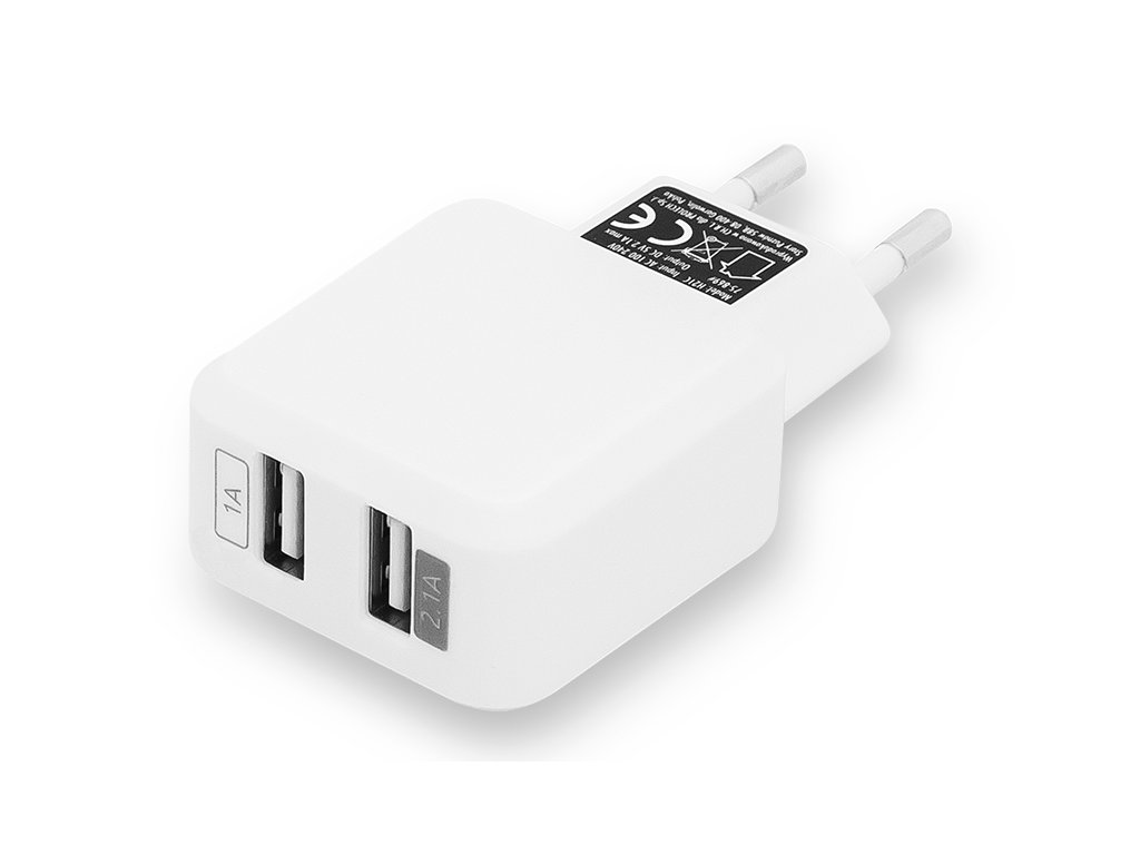 Sieťová nabíjačka 2,1 A s dvoma zásuvkami USB