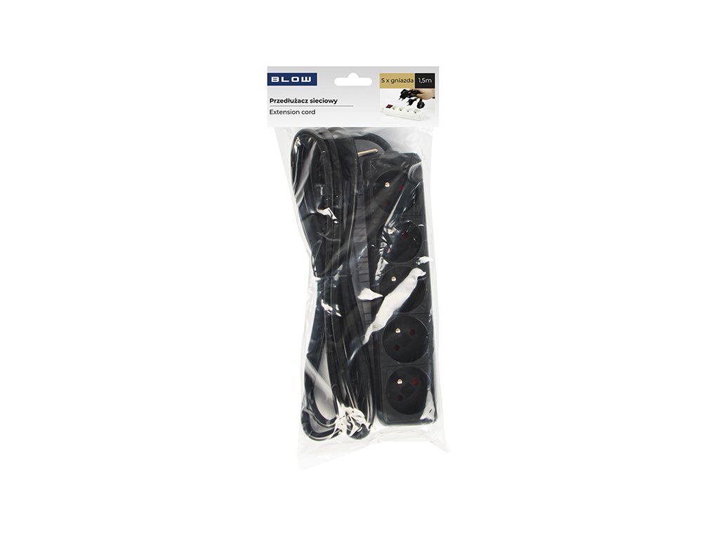 Sieťový predlžovací kábel PR-570P 5-zásuviek s uzemnením 1,5m čierny 3x1,5mm