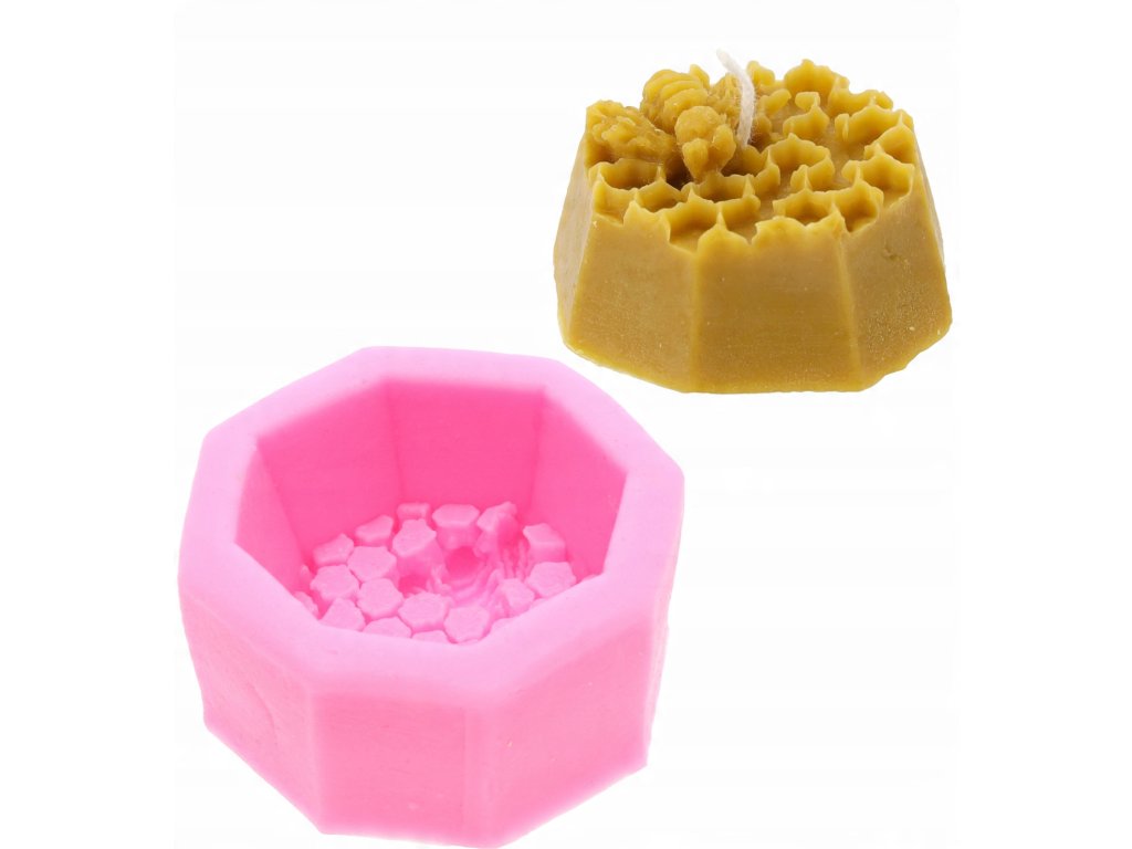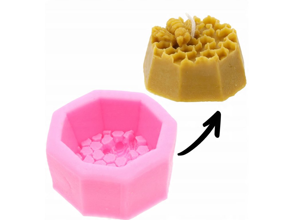 Forma s motívom plástu s včelou vyrobená z vysoko kvalitného silikónu. Slúži na samostatné odlievanie sviečok z vosku alebo parafínu.Je to vynikajúci nástroj pre milovníkov ručných prác, ktorí chcú vytvoriť krásne a originálne ozdoby do svojho domu alebo darčeky pre blízkych.
