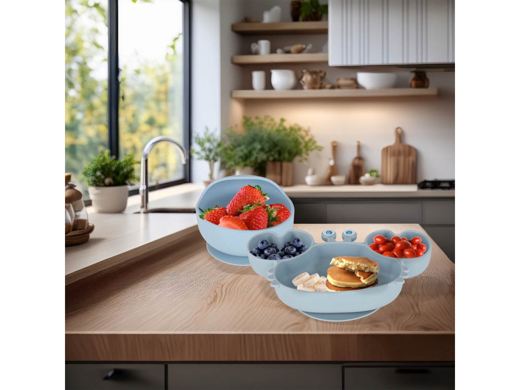 Miska a tanier majú prísavku, ktorá zabráni tomu, aby dieťatko riad prevrátilo - už žiadne padajúce taniere počas jedla.