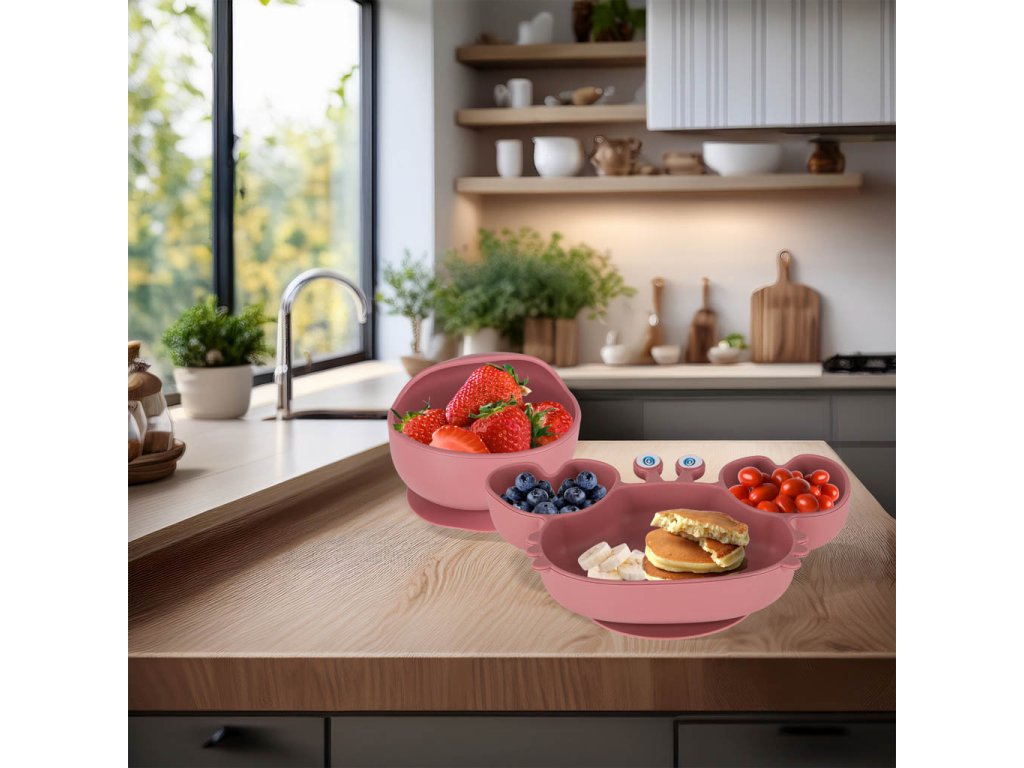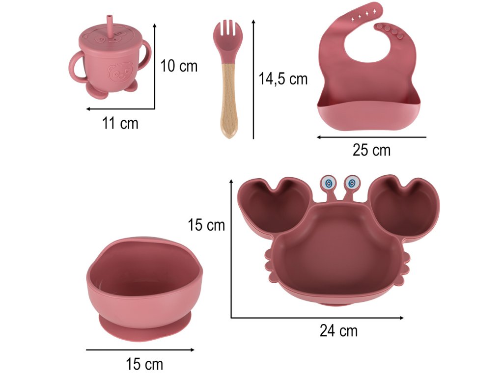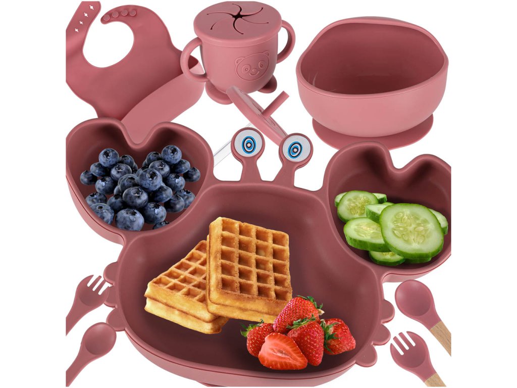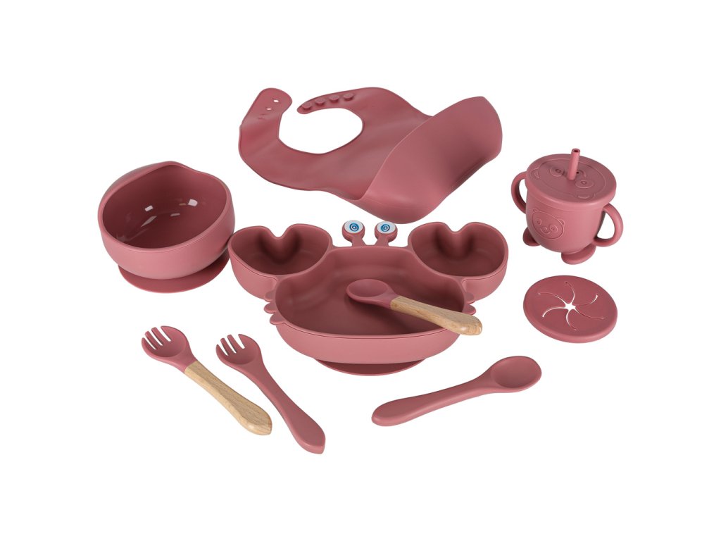 Silikónové detské riady detský krab sada 9 kusov tmavoružová