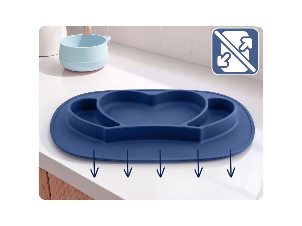 Vďaka výborne priľnavej ploche tanierik pevne drží na stole – bez posúvania a bez rizika prevrhnutia. To menej neporiadku, viac pokoja a bezpečné podmienky na učenie samostatného jedenia.