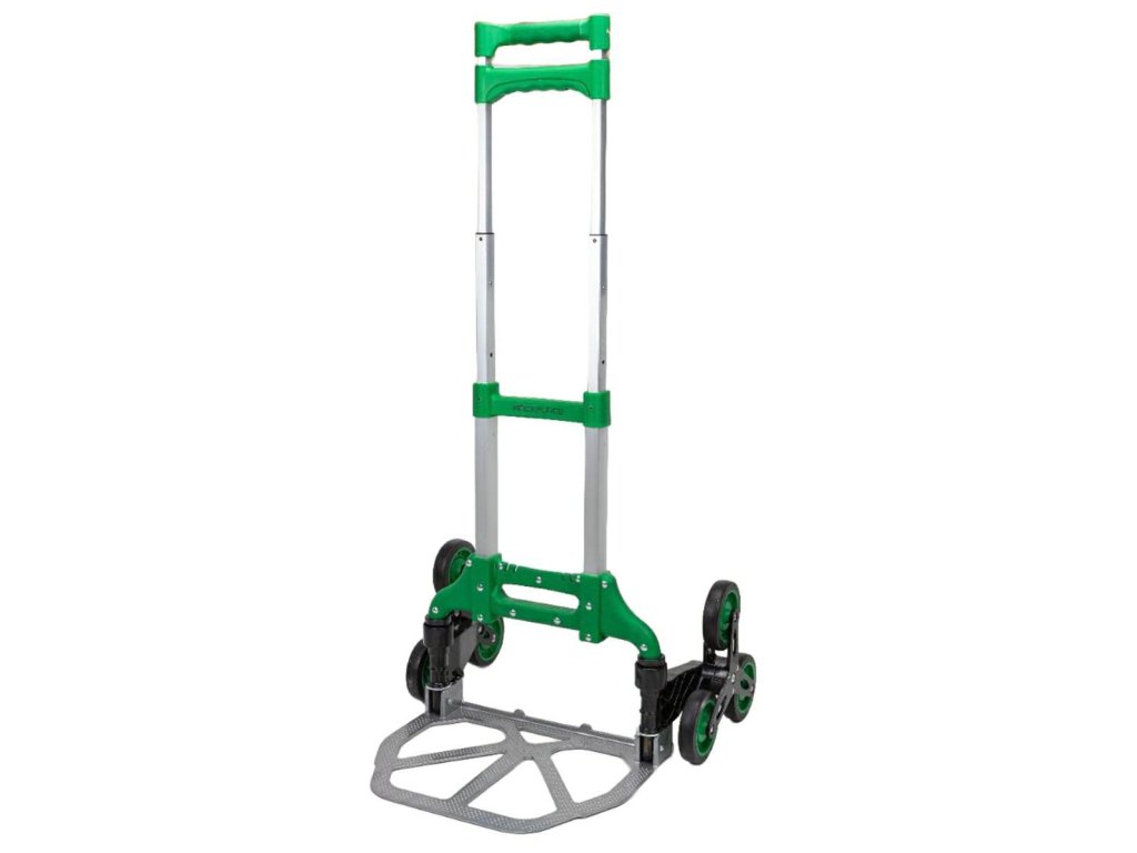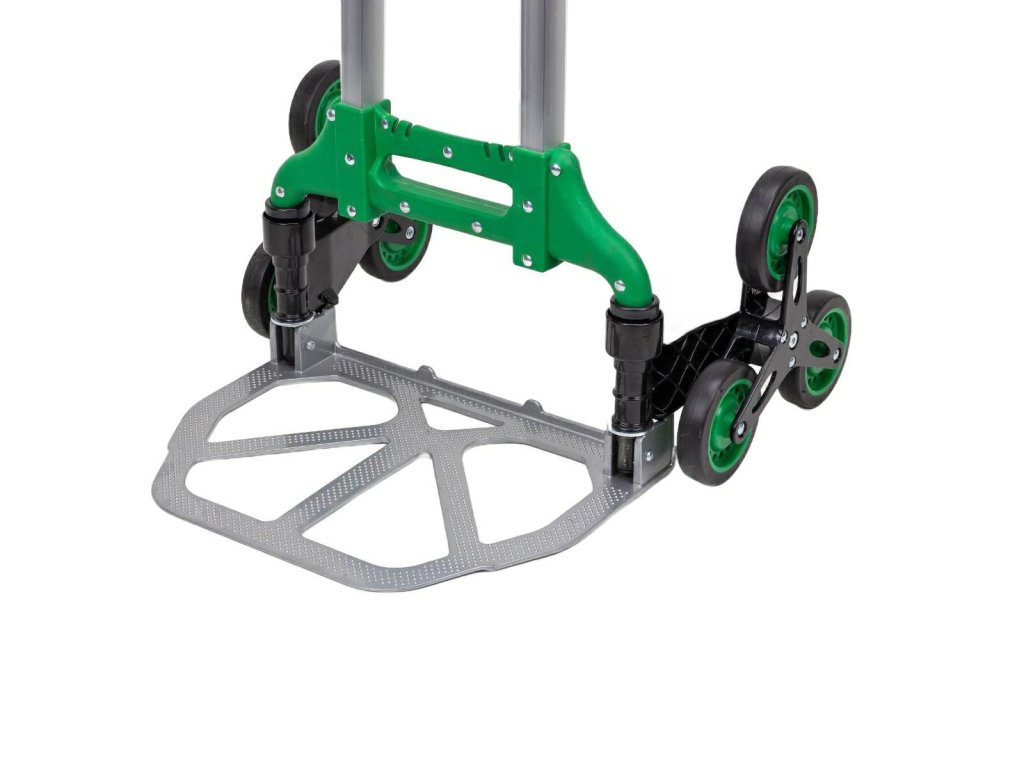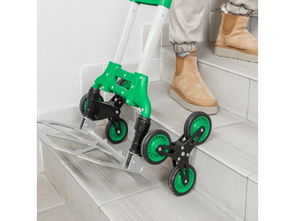 - Má špeciálne navrhnuté kolieska, ktoré umožňujú prekonávanie schodov. Ideálne sa hodí na prepravu tovaru s hmotnosťou do 40 kg medzi poschodiami.