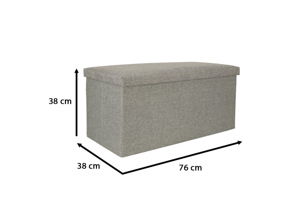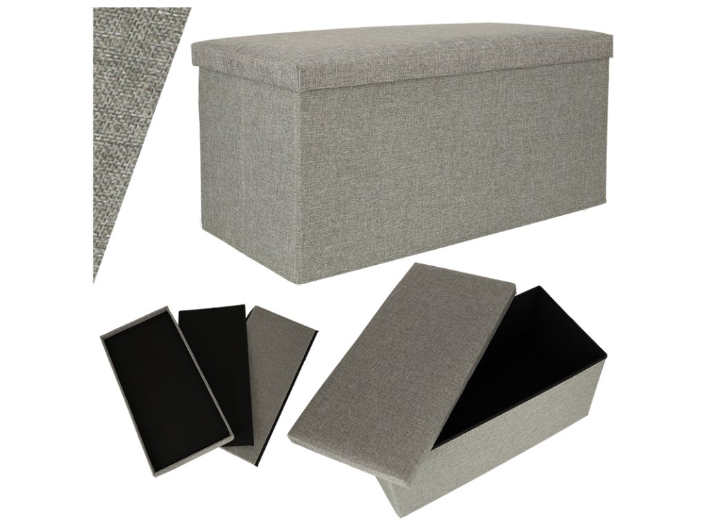 Skladací puf s úložným priestorom sivý veľký 76x38x38cm