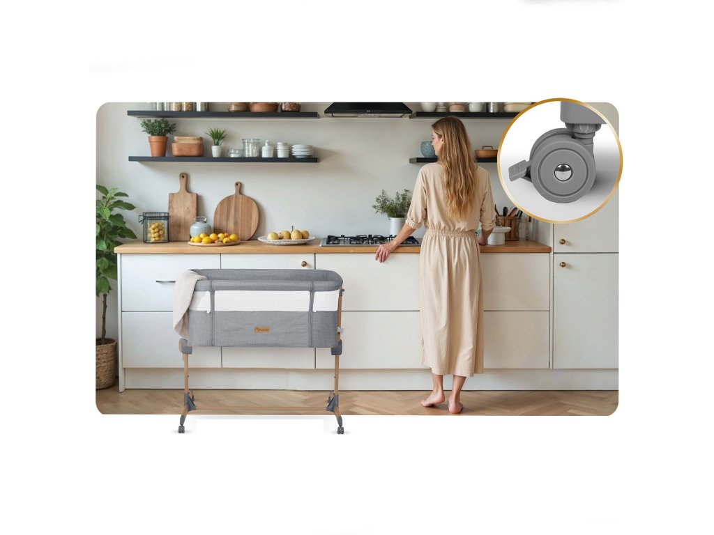Vďaka kolieskam sa postieľka môže zmeniť na pohodlnú, posuvnú postieľku – vždy tam, kde ste!