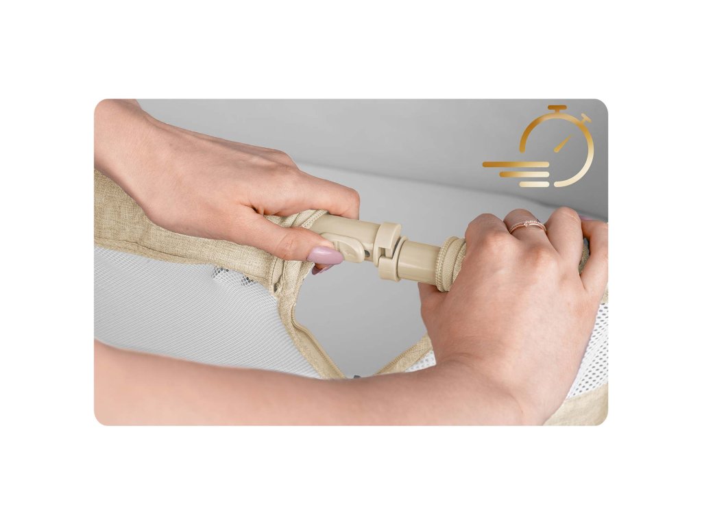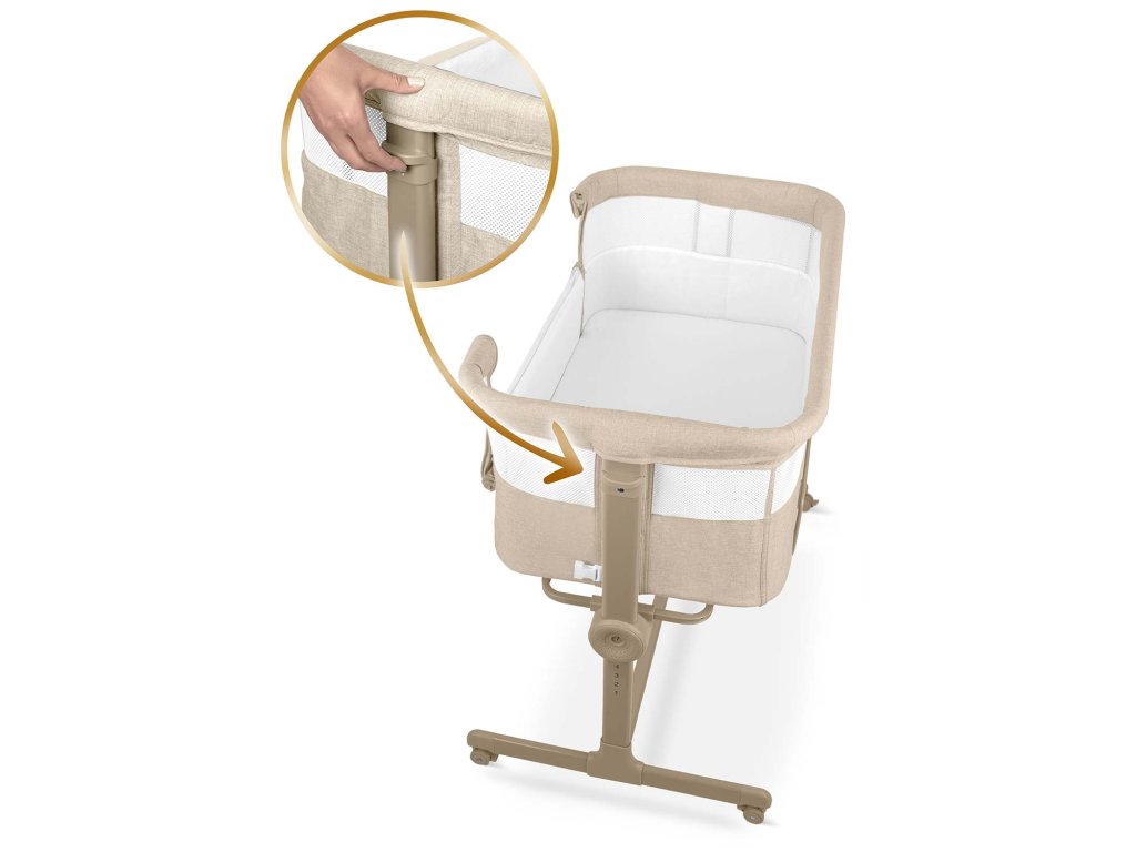 Prístelková postieľka umožňuje matke ľahké kŕmenie v noci, bez nutnosti vstávať a prechádzať do inej izby. Vďaka nastaveniu jednoducho prispôsobíš výšku postieľky k tvojmu matracu.