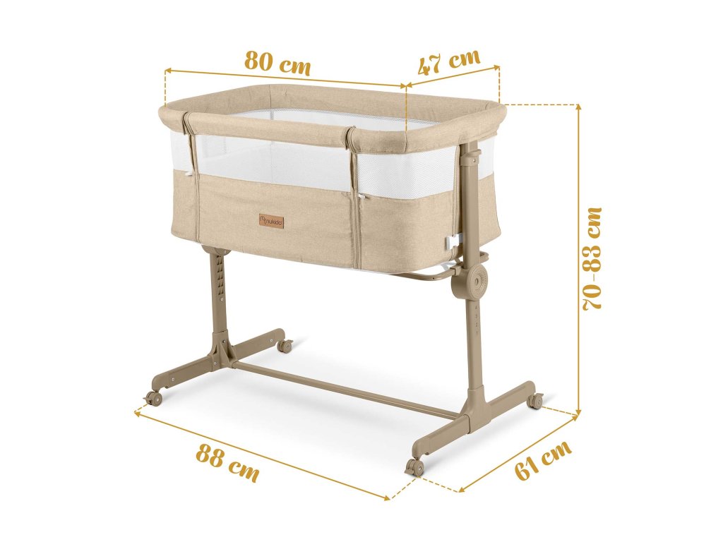 - Prístelková postieľka má možnosť nezávislého nastavenia výšky z oboch strán, čo umožňuje prispôsobiť ju úrovni rodičovskej postele a zabezpečuje pohodlie ako pre dieťa, tak pre rodičov.